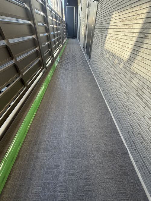 マンション共用廊下の床シート張替工事(長尺塩ビシート)